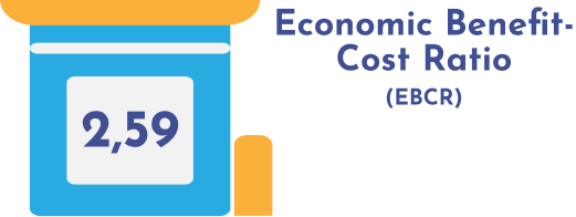 - Setiap IDR1 yang diinvestasikan pada BTB menghasilkan nilai ekonomi sebesar IDR2,59